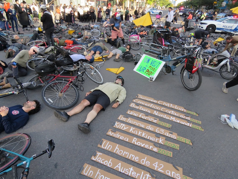 ✱ Pour dénoncer la violence routière à Montréal après la mort d’une cycliste à l’angle de la rue Bernard et de l'avenue du Parc