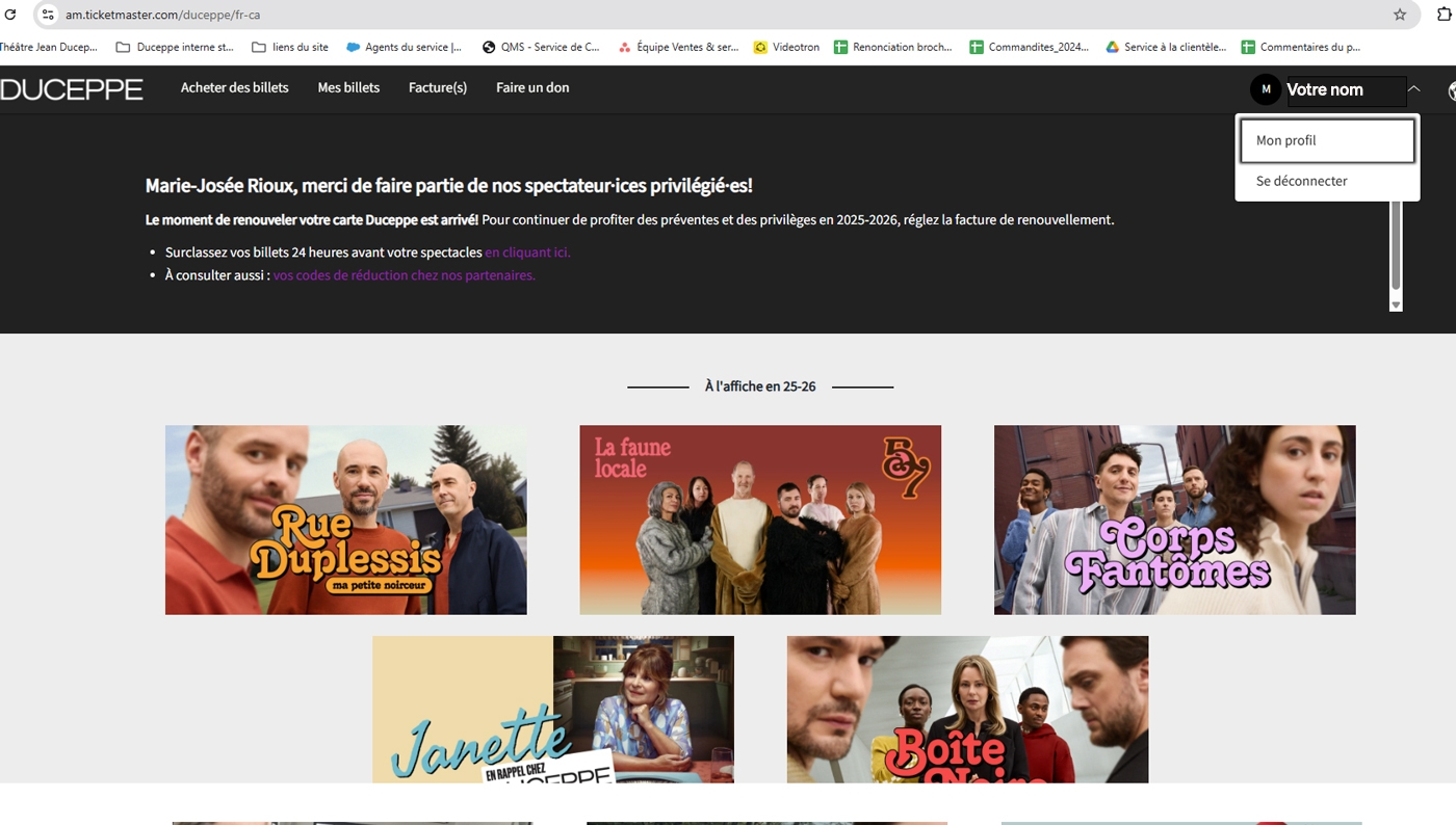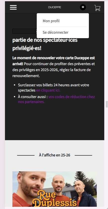 1. Cliquez ici pour accéder à la page de connexion de votre compte Duceppe.
