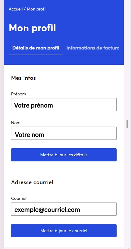 4 juin 2025Afin de protéger vos données personnelles, seules les personnes détentrices d’un compte peuvent en modifier le courriel et le numéro de téléphone principal.
