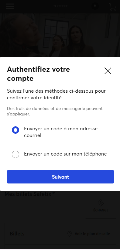 4. On vous demandera alors de vous authentifier, soit par courriel ou avec votre téléphone mobile.