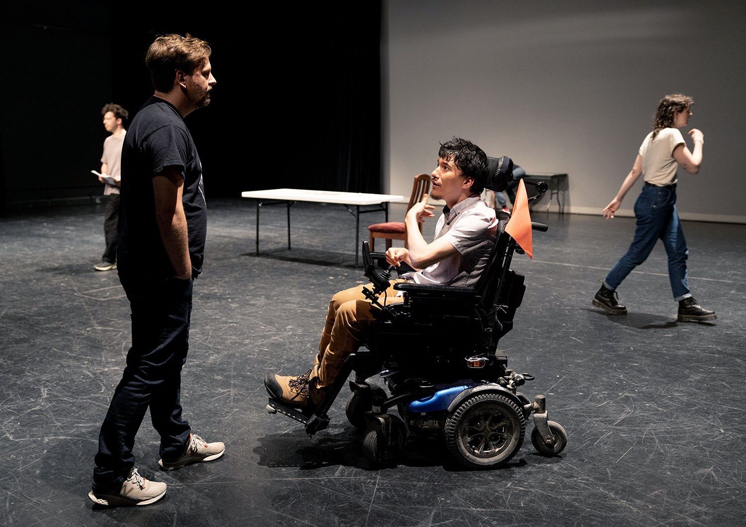 Chaque année, Duceppe ouvre les portes de son Centre de création à deux projets portés par des artistes de la relève dans le cadre de laboratoires de recherche et création. Véritable tremplin pour des artistes qui amorcent leur parcours professionnel ou qui représentent des groupes minorisés, ce programme leur offre un espace pour expérimenter, explorer de nouvelles formes scéniques et approfondir leur démarche artistique. Bien que ces laboratoires se déroulent au cœur même de Duceppe, ils ne garantissent pas une présentation sur notre scène principale, mais constituent une étape essentielle dans le développement d’une œuvre. Pour le lancement de ce projet, nous avions bénéficié du soutien de La Ruche et du Fonds Mille et un. En 2024-2025, c’est maintenant grâce à nos donateur·ices de la campagne majeure Duceppe que l’ensemble du projet prend vie.
