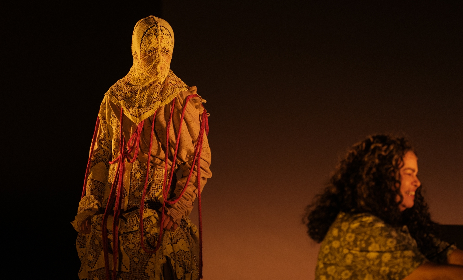 Certains éléments du décor deDocteure ont été récupérés pour la scénographie et les accessoires de Moi, dans les ruines rouges du siècle: du bois pour la construction des structures et pour la consolidation du fauteuil, du coffre et de la télévision. Le fauteuil a été rembourré avec un coussin de seconde main et la tapisserie de la scénographie originale a été réutilisée pour décorer une armoire. Plusieurs tissus et matériaux écoresponsables ont été utilisés pour les costumes comme le Sheertex et la laine de mérinos recyclée. 🐏