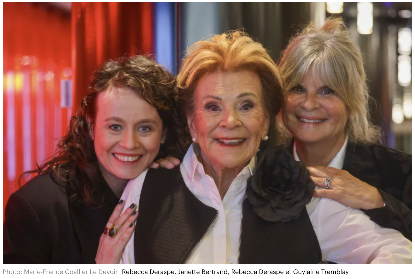 «Elle méritait bien une pièce de théâtre à son nom, "notre" Janette Bertrand, pour ses 100 ans. Et quelle pièce ce fut! Duceppe nous a offert l’un des grands moments culturels de l’année 2025 avec Janette. Le texte de Rébecca Déraspe est riche, sensible, minutieusement documenté, à la virgule près. La mise en scène de Jean-Simon Traversy, avec son concept de repas-spectacle sur scène et son chœur de personnages faisant écho aux propos de la protagoniste, est inventive et respectueuse.»