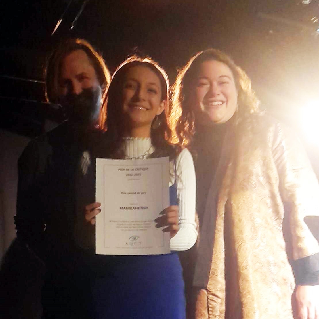 Le 4 décembre 2023, lors de la remise des Prix de l'Association québécoise des critiques de théâtre (AQCT), le jury a remis un prix spécial à notre production Manikanetish, de Naomi Fontaine et Julie-Anne Ranger-Beauregard d’après le roman de Naomi Fontaine, mis en scène par Jean-Simon Traversy.