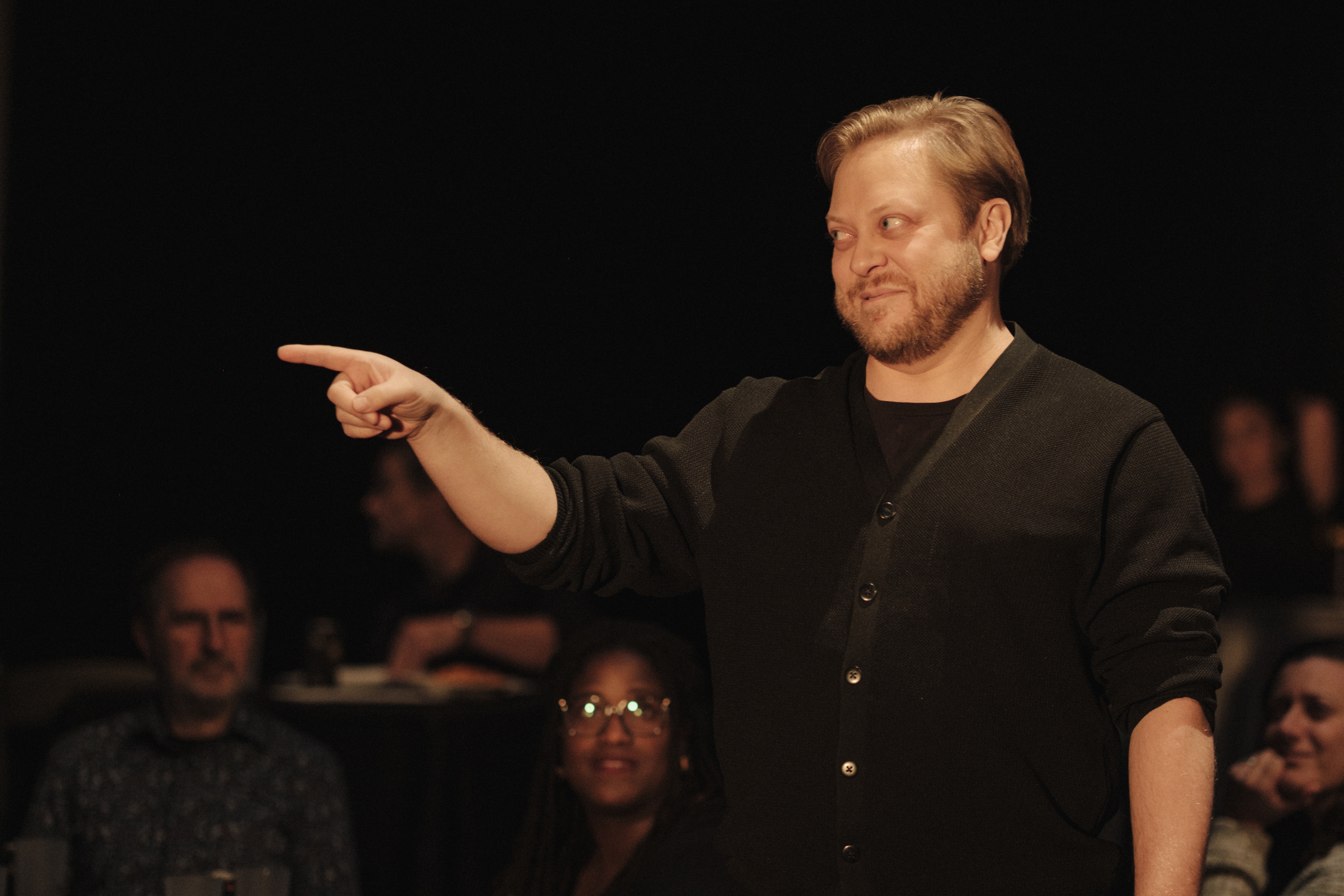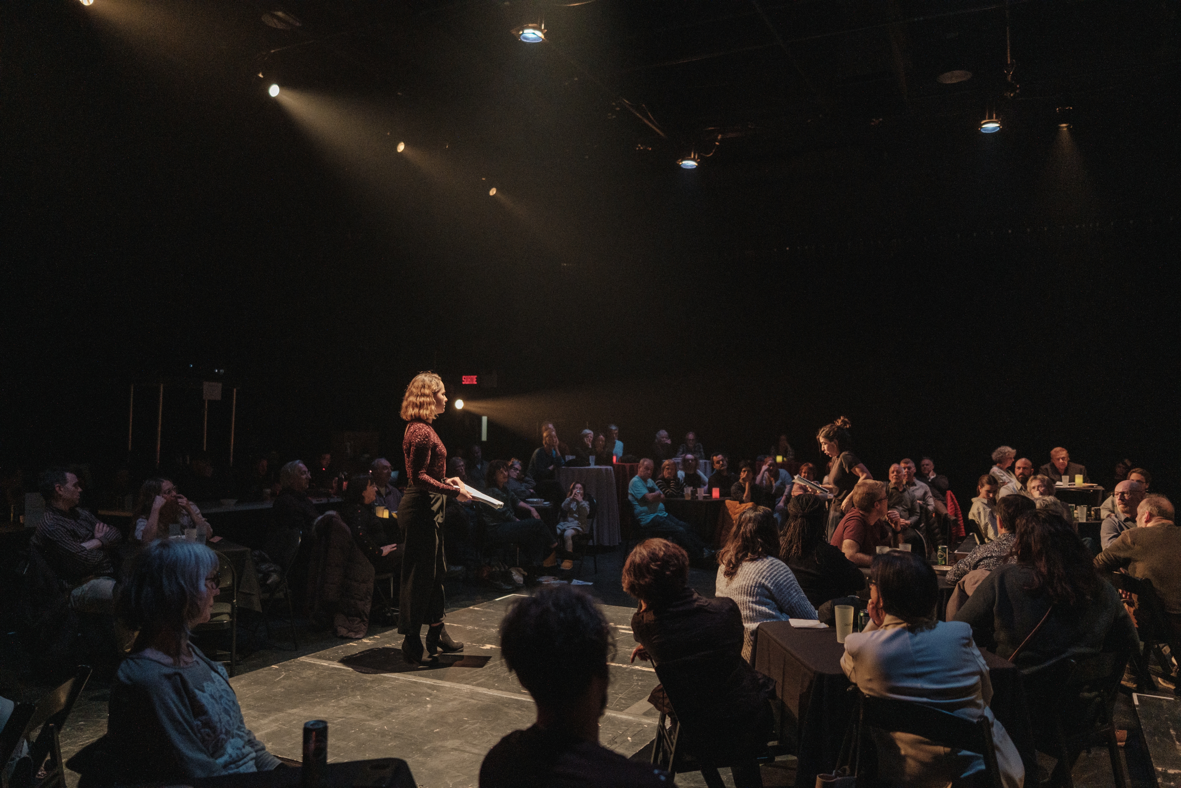 Le vendredi 14 novembre, nous avons donné carte blanche à Denis Bernard et, pour la première fois, quelques fidèles membres de notre public (notamment les détenteur·ices de la carte Impact) ont pu pénéter dans notre tout nouvel espace de diffusion et de création pour assister à Vania Last Call, une relecture (très) libre de la célèbre pièce de Tchekhov en formule cabaret, dans une ambiance conviviale et intime.
